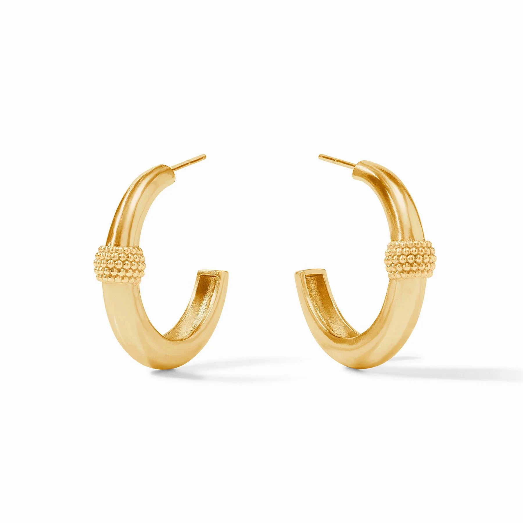 Each gently tapering hoop features a soft, smooth finish and a band of delicate golden beads