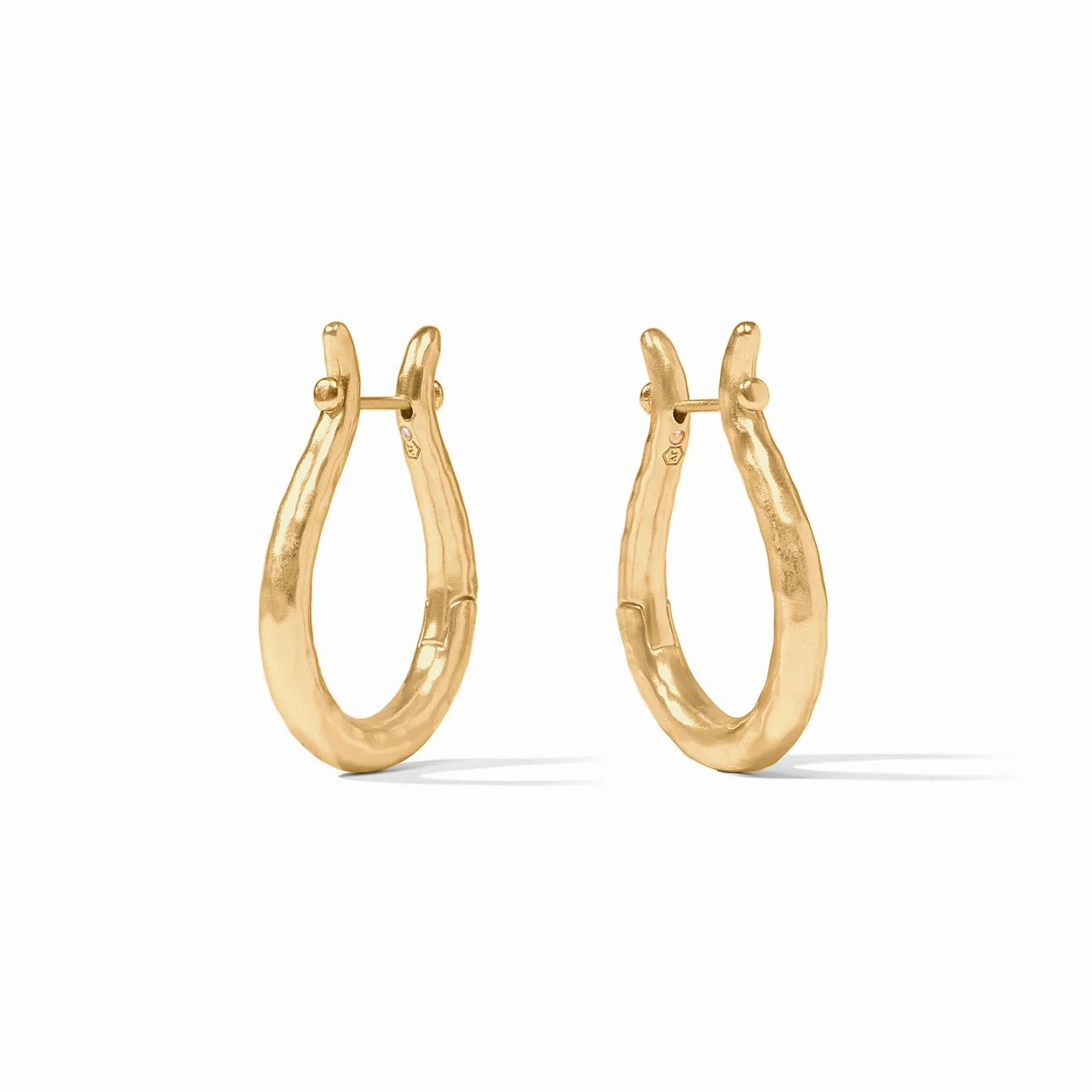 Brimming with timeless equestrian elegance, these lightly hammered golden hoops recall the form of vintage bridle rings